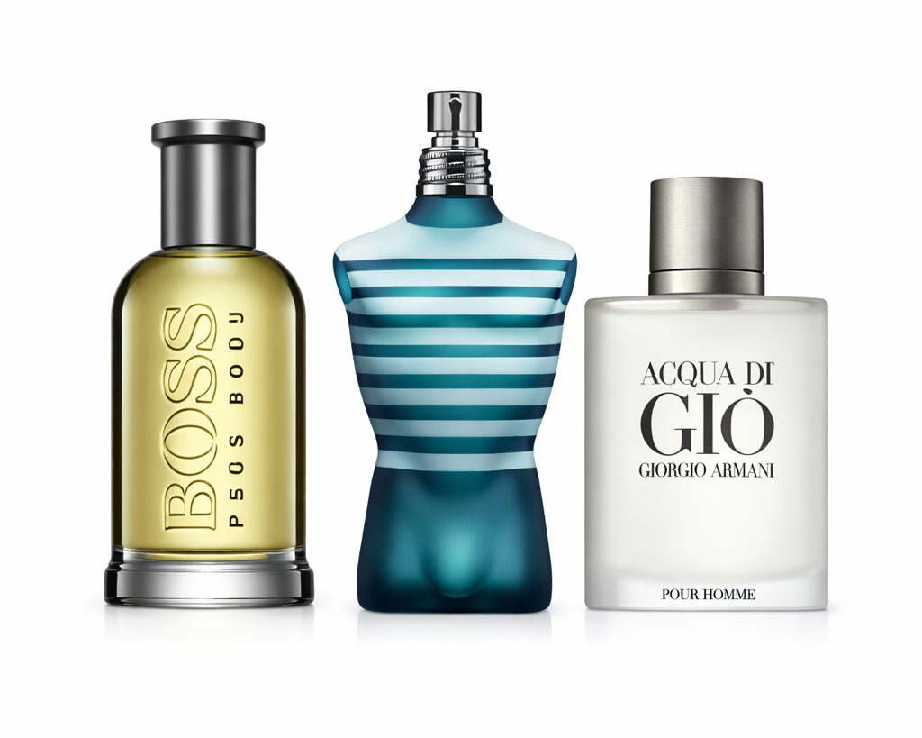 Kit Boss Bottled 100ml + Le Male 125ml + Acqua di Giò 100ml – Conjunto com Três Perfumes Masculinos