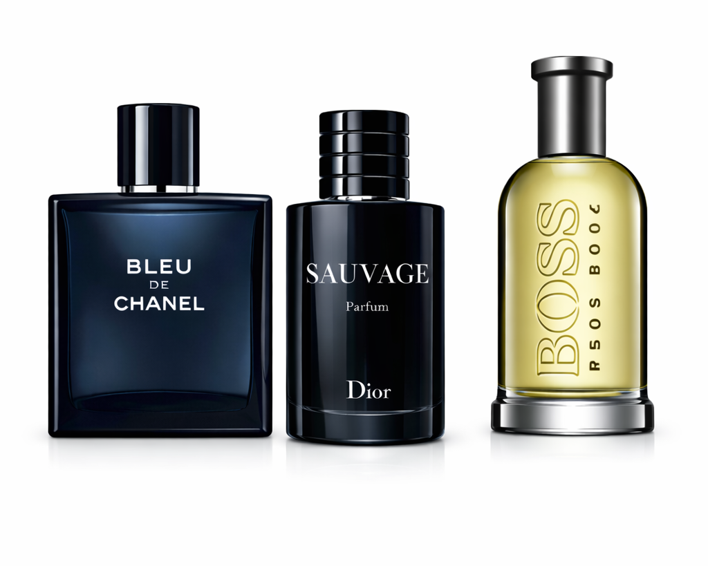 Kit Bleu de Chanel 100ml + Sauvage Parfum 100ml + Boss Bottled 100ml – Conjunto com Três Perfumes Masculinos